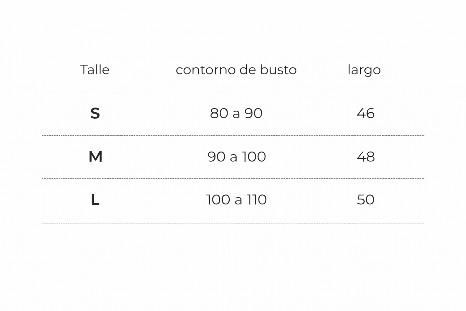 Todas las medidas estan tomadas en centímetros. Para medirte recomendamos usar un centímetro.