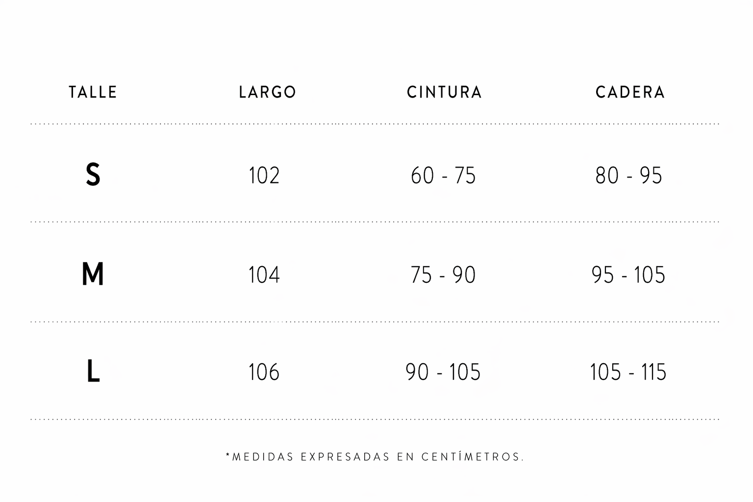 Todas las medidas estan tomadas en centímetros. Para medirte recomendamos usar un centímetro.