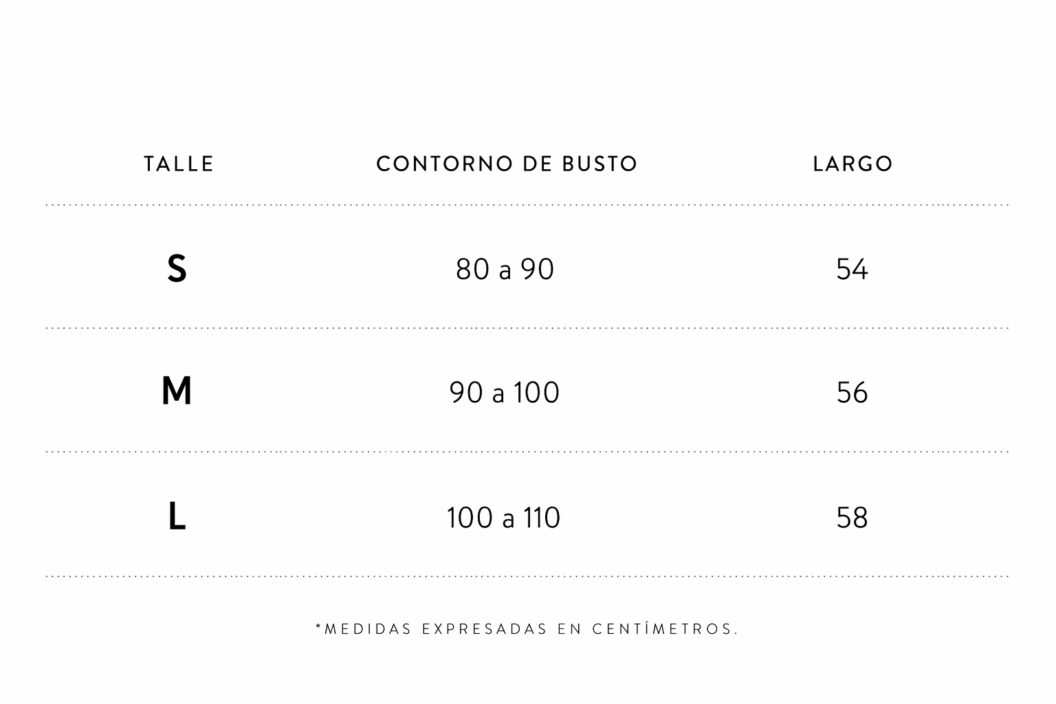 Todas las medidas estan tomadas en centímetros. Para medirte recomendamos usar un centímetro.