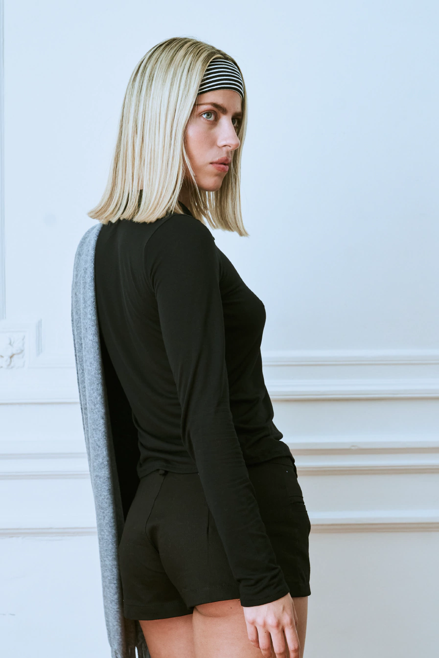 Top manga larga confeccionado en rayón. Tiene una hilera con terminación asimétrica de botón broche a lo largo de toda la prenda para que abroches y desabroches como mas te guste, dependiendo si queres mostrar mas o menos piel.