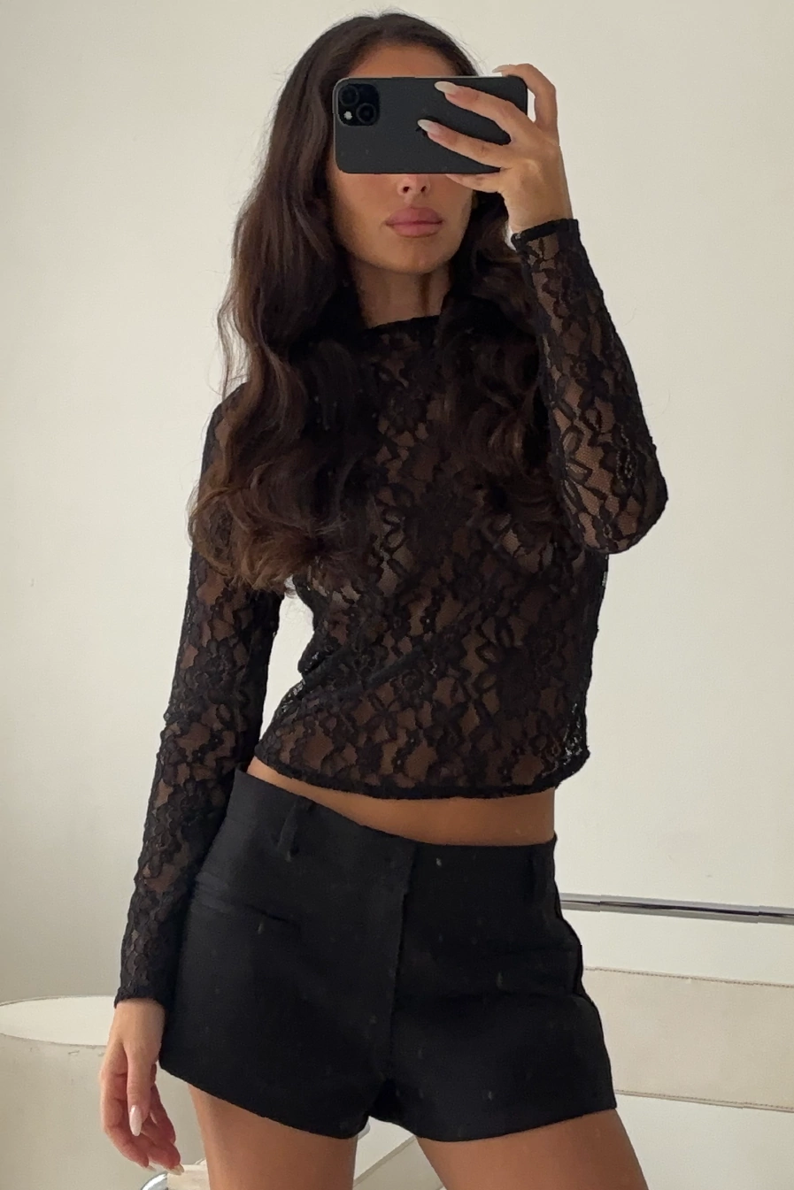Top manga larga de encaje elastizado. Para un fit épico combinalo con la pollera Come On Over.