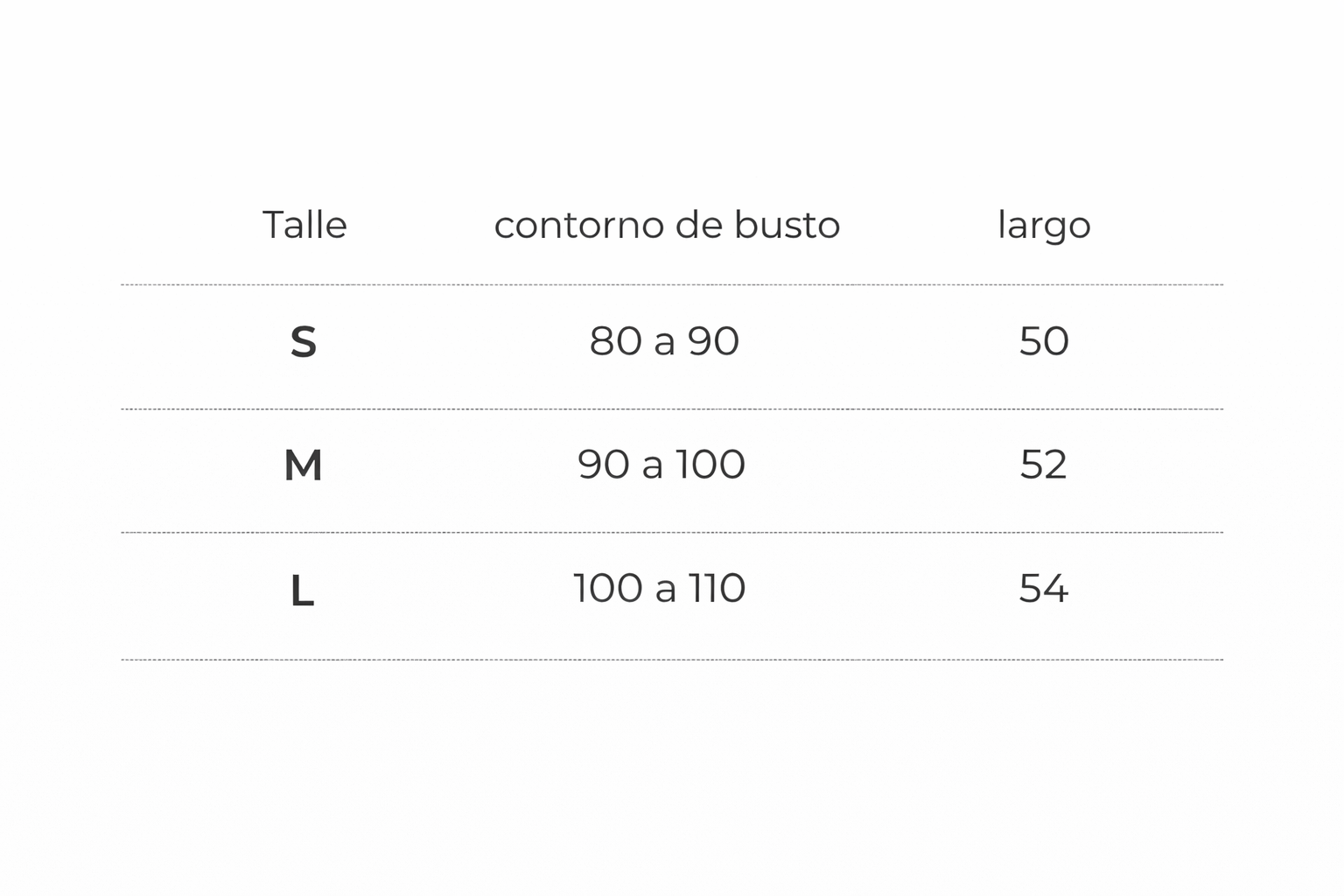 Todas las medidas estan tomadas en centímetros. Para medirte recomendamos usar un centímetro.